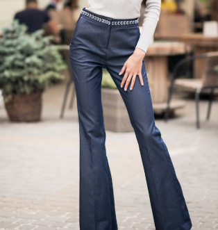 Calças de tecido com cinta média.